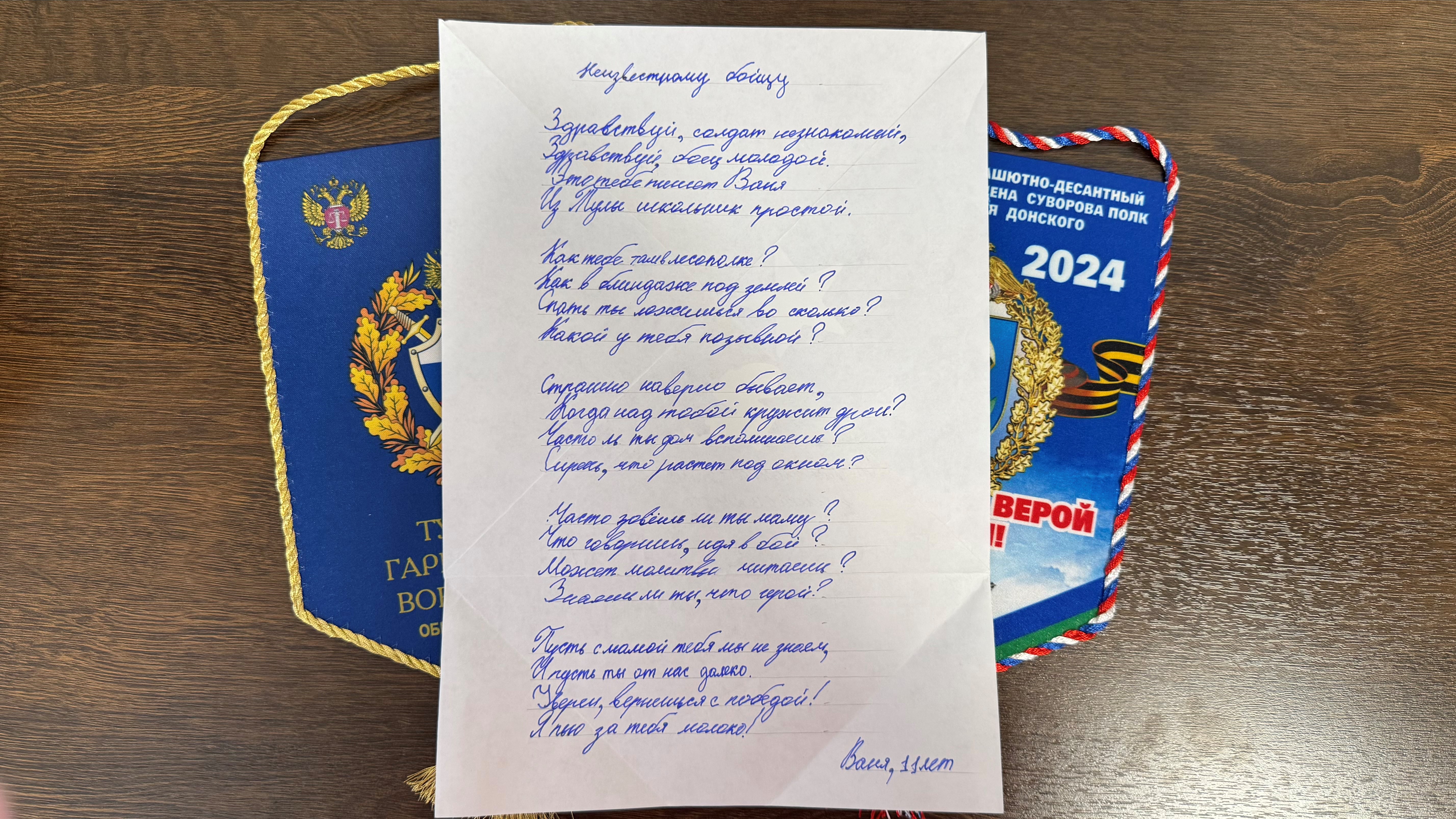 Сын помощника председателя Тульского гарнизонного военного суда Канайкин Ваня принял в ней участие. Он написал письмо неизвестному бойцу: Здравствуй, солдат незнакомый, Здравствуй, боец молодой. Это тебе пишет Ваня Из Тулы школьник простой Как тебе там в лесополке? Как в блиндаже под землей? Спать ты ложишься во сколько? Какой у тебя позывной? Страшно наверно бывает, Когда над тобой кружит дрон? Часто ль ты дом вспоминаешь? Сирень, что растет под окном? Часто зовешь ли ты маму? Что говоришь, идя в бой? Может молитвы читаешь? Знаешь ли ты, что герой? Пусть с мамой тебя мы не знаем, И пусть ты от нас далеко. Уверен, вернешься с победой! Я пью за тебя молоко! Письма от детей для солдат — это трогательные свидетельства поддержки и любви нашим защитникам. Они напоминают нам о том, как важно быть человечными в трудные времена. Каждый ребенок, пишущий такие письма, становится частью большой истории о патриотизме и единстве. Эти простые, но такие значимые жесты помогают укреплять дух нации и показывают, что даже в самых сложных ситуациях мы поддерживаем друг друга и ждем наших воинов с победой. Мы верим, что наши слова поддержки согреют сердца наших защитников и напомнят им: их подвиг видят, помнят и ценят миллионы соотечественников. Слава героям! Спасибо вам за мужество, стойкость и любовь к Родине! Ответственный за взаимодействие со СМИ